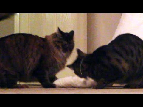 Prim and simba get along great! Are these two cat fighting or playing (play fighting)? Cats who normally have a hostile relationship or cats who are unfamiliar with each other won't typically engage in play together. Real cat fighting / cat fight. Let us know what you think and tell us also why?